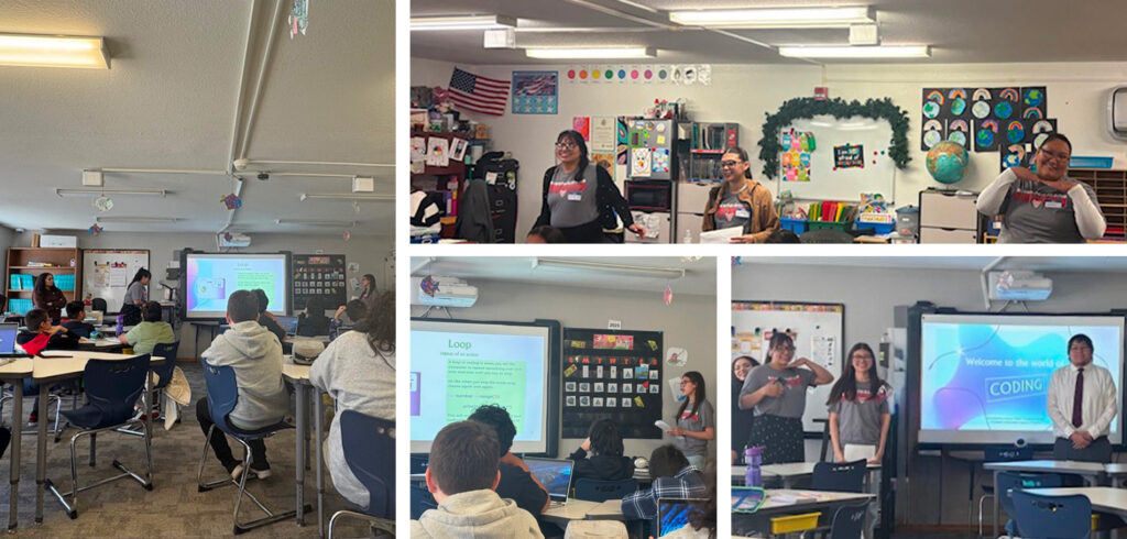 Computer Information Systems students at United Tribes Technical College (UTTC), all of whom had completed computer science electives, organized and led community coding workshops for 4th and 5th grade students in the surrounding community. The workshops introduced young learners to foundational coding skills through interactive games and activities, along with custom lesson plans and worksheets independently developed by the college students.